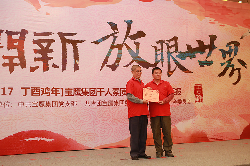 ▲寶鷹集團副總裁于泳波、財務總監曾智為優秀員工頒獎