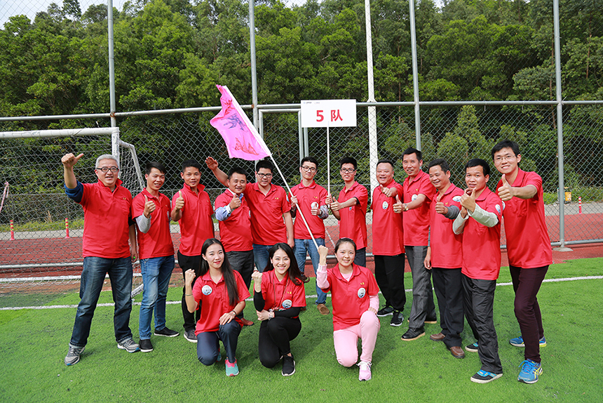 ▲寶鷹集團董事局主席古少明與部分十年以上資深員工拍照合影