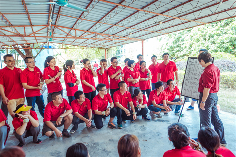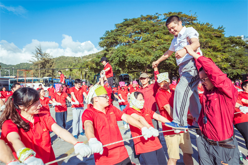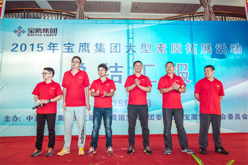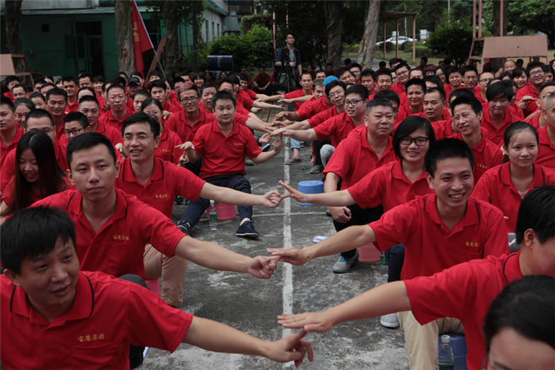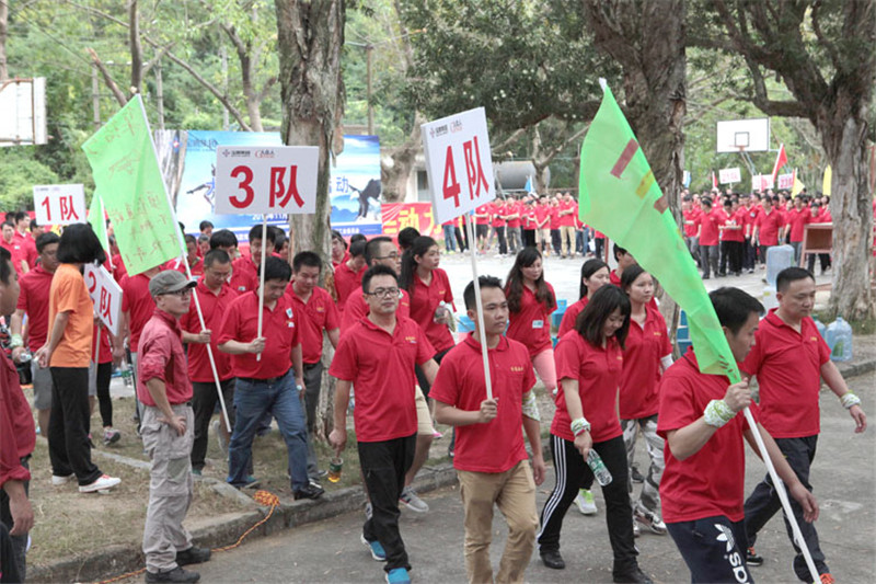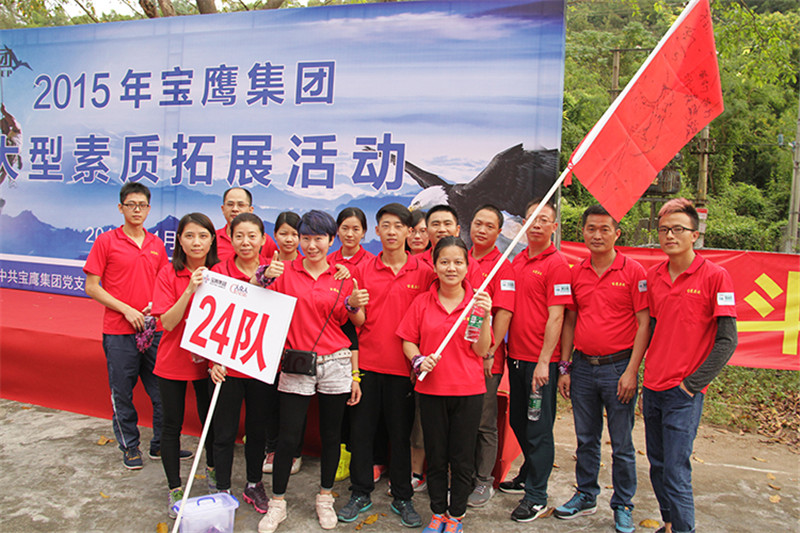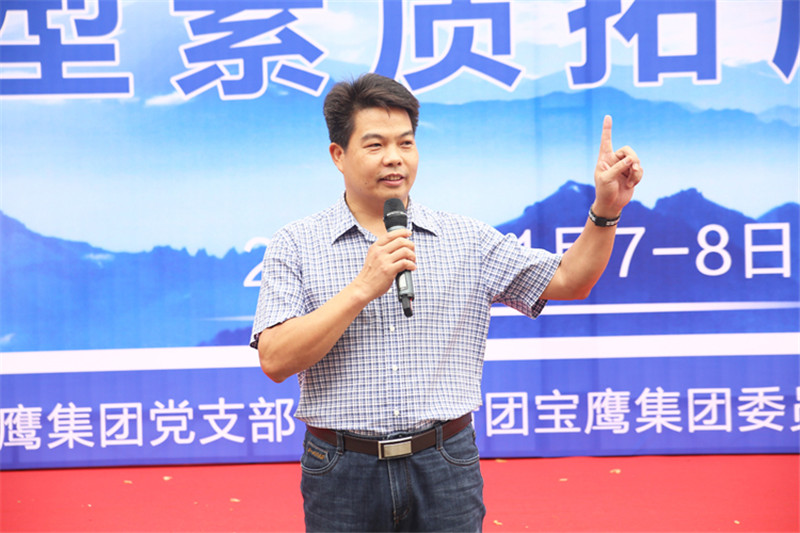 7日一大早,參加拓展活動的員工即分乘10輛大巴,滿懷期待地奔赴此次拓展活動的開展基地——深圳溪涌工人度假村。到基地車甫一停穩,教官的哨聲便催促著眾人馬上列成整齊的隊伍,一隊一隊地行進至主訓練場,聆聽寶鷹集團董事長古少波在拓展訓練正式開始前的講話。