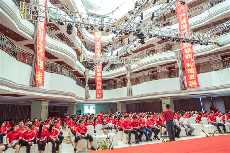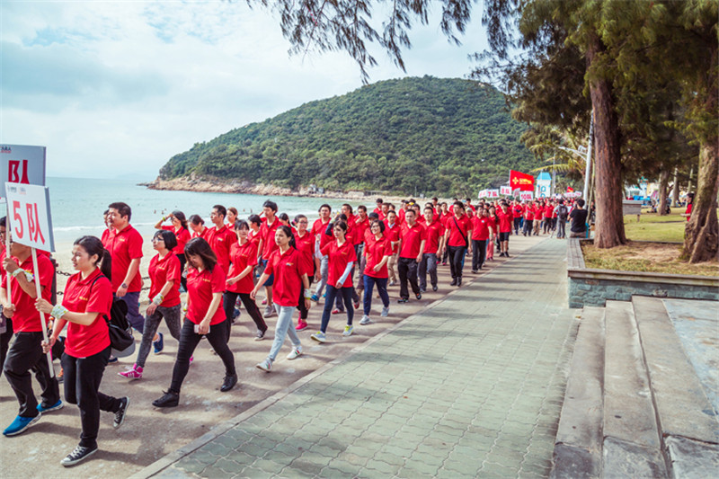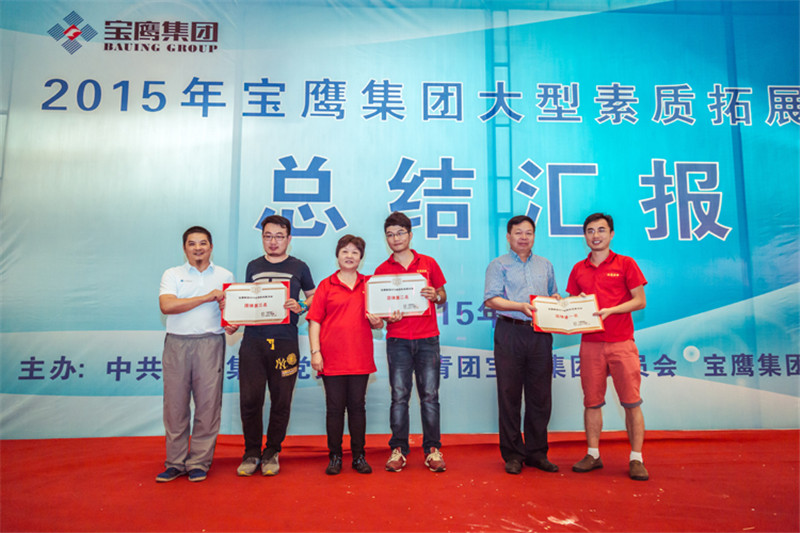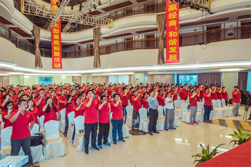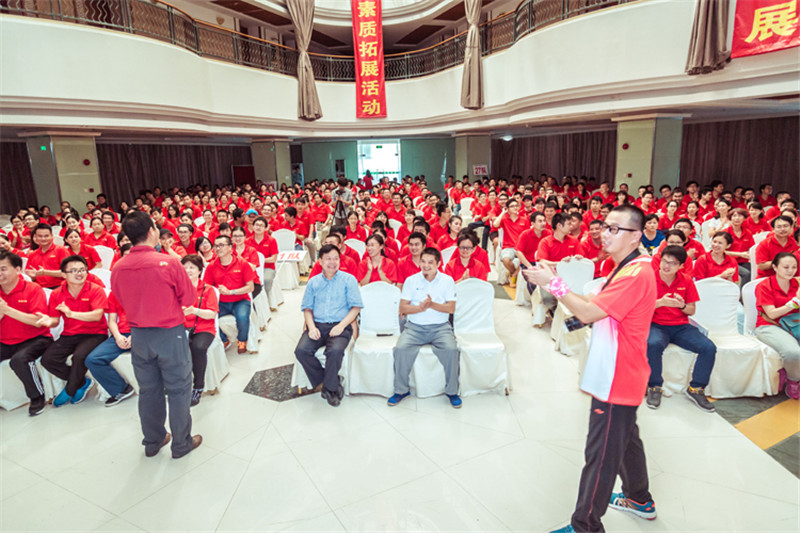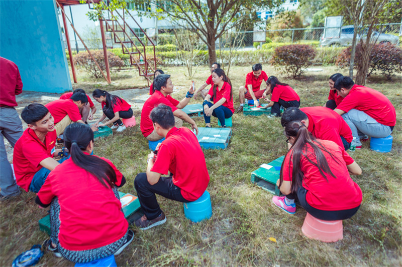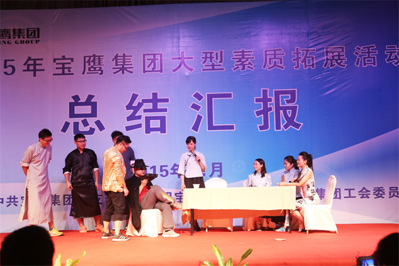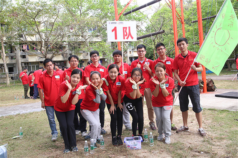 7日一大早,參加拓展活動的員工即分乘10輛大巴,滿懷期待地奔赴此次拓展活動的開展基地——深圳溪涌工人度假村。到基地車甫一停穩,教官的哨聲便催促著眾人馬上列成整齊的隊伍,一隊一隊地行進至主訓練場,聆聽寶鷹集團董事長古少波在拓展訓練正式開始前的講話。