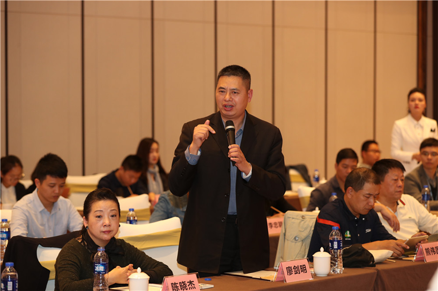 互動交流環節,深裝協常務副會長莊志偉,副會長兼總工程師王彥波,副秘書長鄭鑫、劉靜,深圳遠鵬裝飾集團有限公司總裁馮照杰,深圳市文業裝飾設計工程有限公司董事長范少周,深圳市中深裝建設集團有限公司董事長柯穎鋒,深圳市南利裝飾工程有限公司總裁鄺唐明以及來自各裝飾企業的四十多名領導專家等各抒己見、暢所欲言。通過對康美藥業新總部大樓項目工期,工序和流程的深入了解,就項目引發了關于打造高品質工程的建筑工業化,施工工序嚴謹化和企業社會責任感等問題進行深入交流。