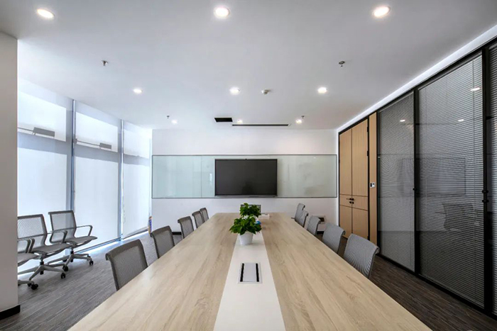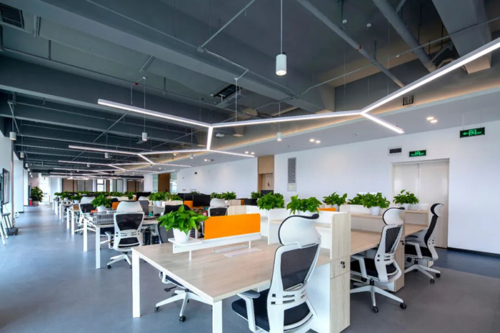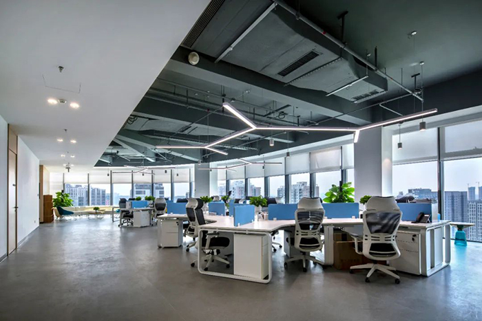 開(kāi)放式的辦公區(qū)以簡(jiǎn)潔為尚。高效實(shí)用的功能和舒適耐用的品質(zhì),是宏電關(guān)注的重點(diǎn)。大廈十九至二十四層分布多樣化差異化的集體辦公空間,整體以冷色調(diào)為主,Y字形的吊頂裝飾,呈現(xiàn)出企業(yè)的科技屬性。流動(dòng)高效的辦公空間和良好的景觀視野,為員工營(yíng)造愉悅的辦公體驗(yàn),最大限度的提高辦公的高效性和舒適性。