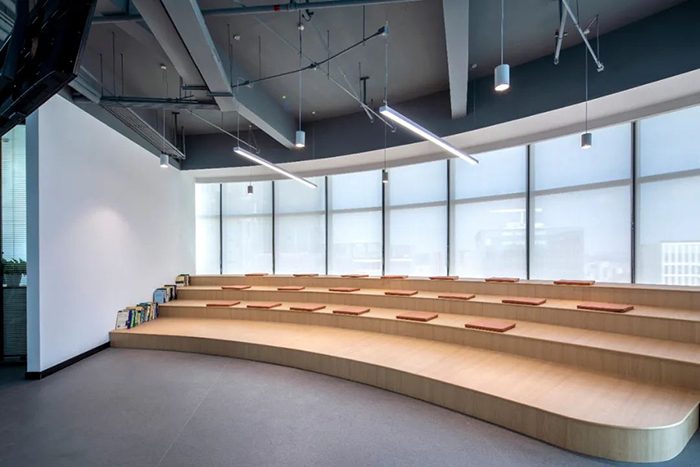 每層的辦公區(qū)域都搭配有休息區(qū)、學(xué)習(xí)區(qū)、運(yùn)動(dòng)區(qū)和會(huì)議室。合理的空間布局、多樣的娛樂(lè)休閑區(qū)、豐富的辦公儲(chǔ)物柜、靈活的辦公家具,宏電將人性化細(xì)節(jié)落實(shí)到對(duì)員工方方面面的關(guān)照之中。學(xué)習(xí)區(qū)采用階梯式的開(kāi)放設(shè)計(jì),配有高清LED屏,可進(jìn)行各類學(xué)習(xí)交流活動(dòng)。會(huì)議室以簡(jiǎn)單實(shí)用為原則,大、中、小不同類型的會(huì)議室,滿足各類不同的會(huì)議需求。