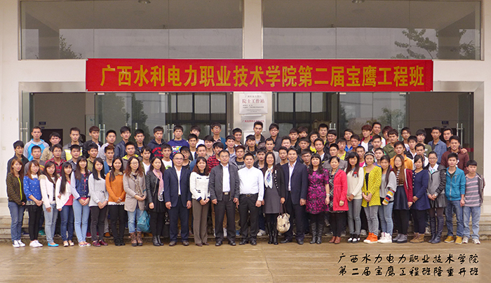 ★ 2012年11月15日,廣西水利電力職業(yè)技術學院“寶鷹工程班”隆重開課,校企合作邁出關鍵一步。