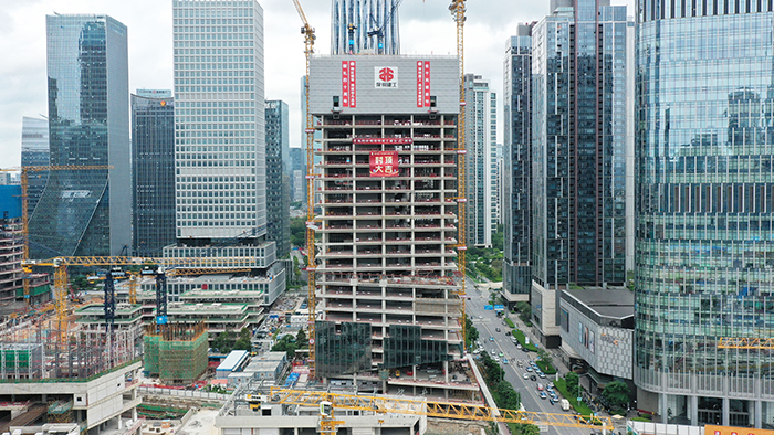 5月5日上午,由深圳建工控股與寶鷹股份共同投資建設的深圳建工·寶鷹總部項目主體結構完成封頂,并舉行封頂儀式。