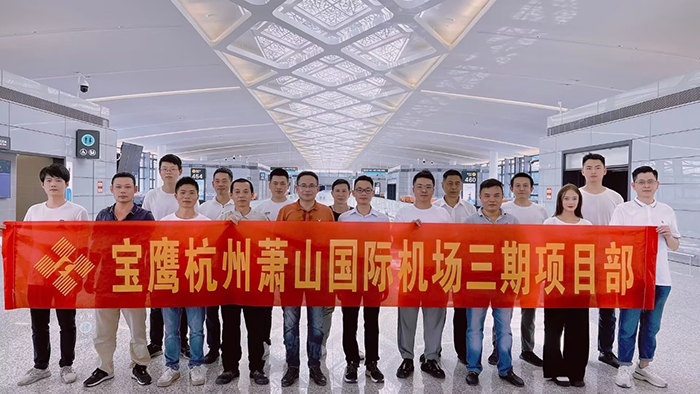 寶鷹集團承建的杭州蕭山國際機場三期項目T4航站樓及陸側交通中心工程旅客航站樓及北一指廊工程精裝五標段,功能涉及國內混流、國際到達、國內出發和國際出發。